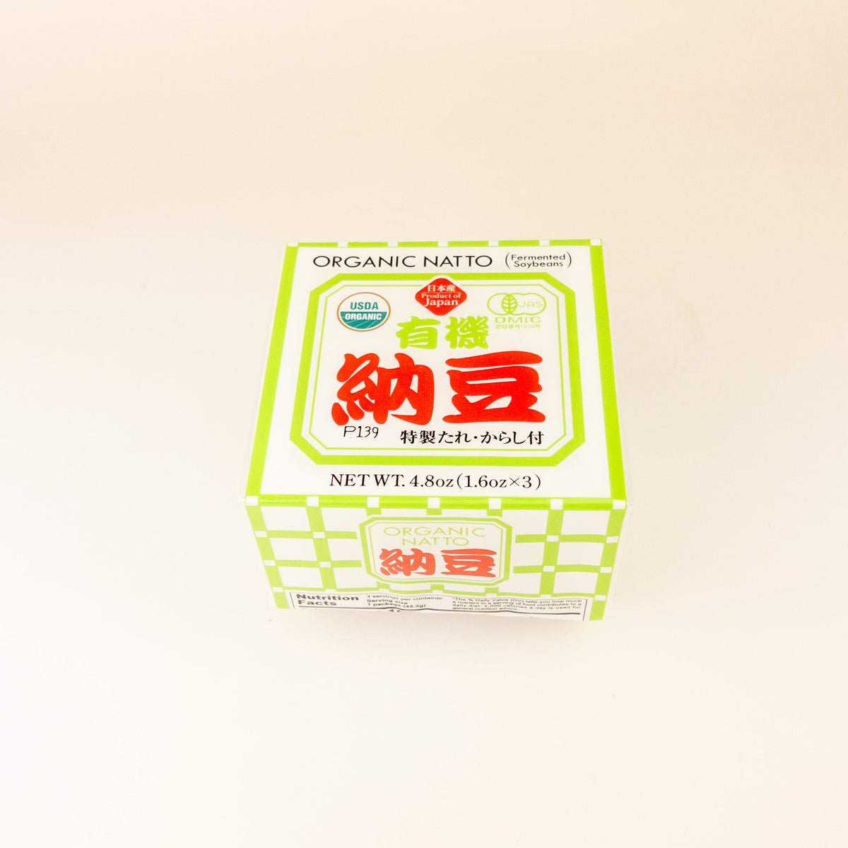 Organic Natto from Japan! Contains three individually packed servings. Each serving has a mustard and tare (savory seasoning sauce) pack inside, so once it's thawed its ready to serve with rice, nori, or however you like to eat your natto!